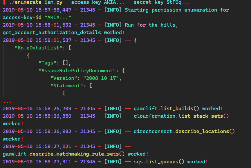 | AuthorizeSecurityGroupIngress | AddRoleToInstanceProfile | DeleteMembers | ListBuckets | PutBucketPolicy | |||||