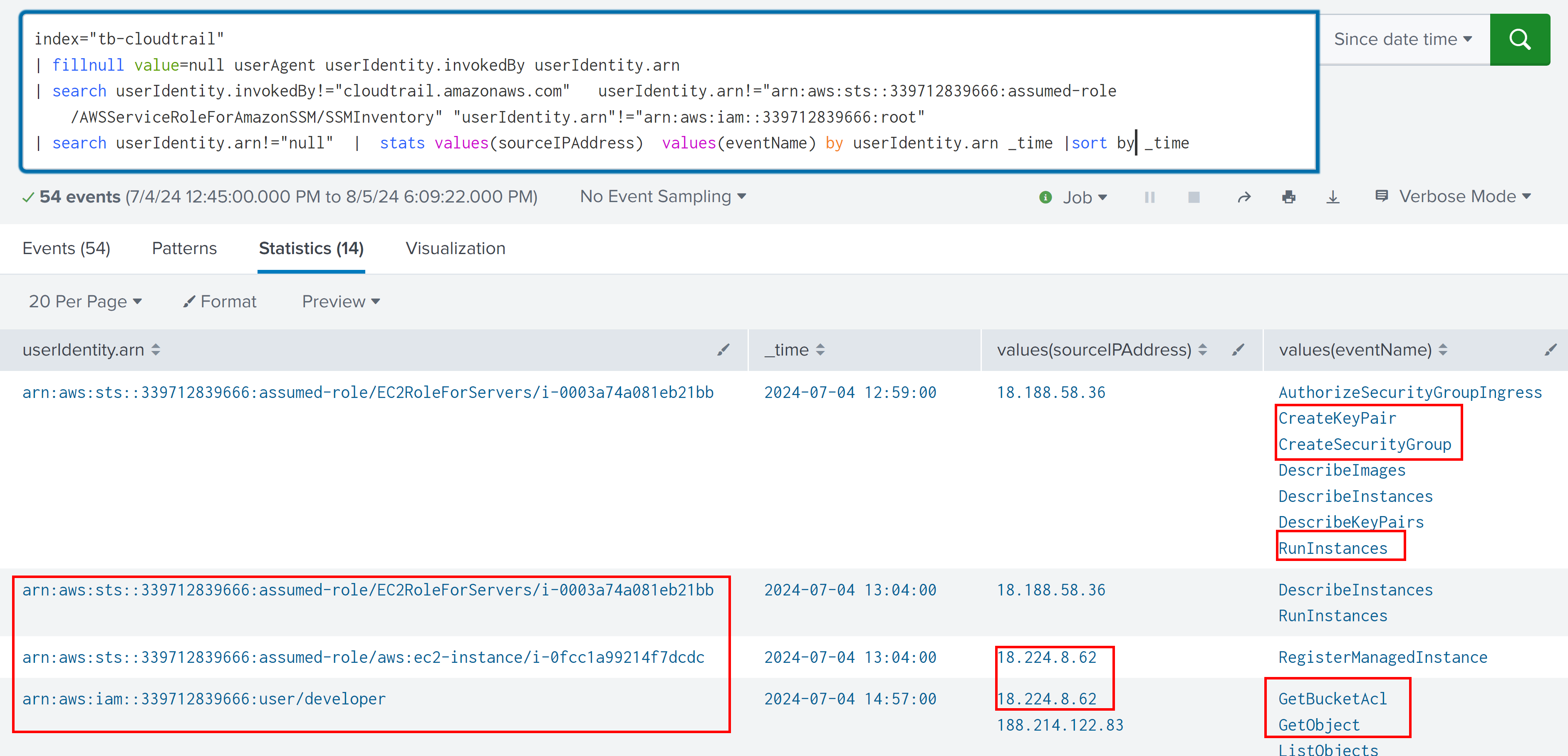 But before going with the EC2RoleForServer we have to remember that we excluded null ARN and it can lead to missing evidences that can help us to identify suspicious activity.
