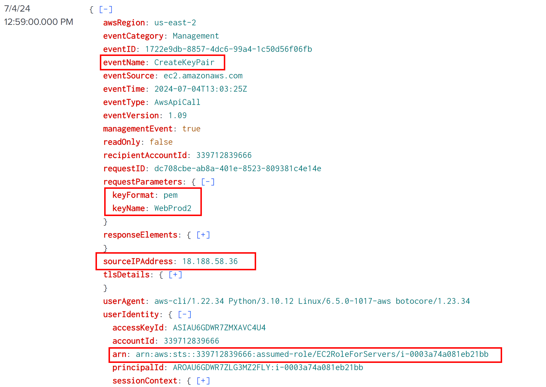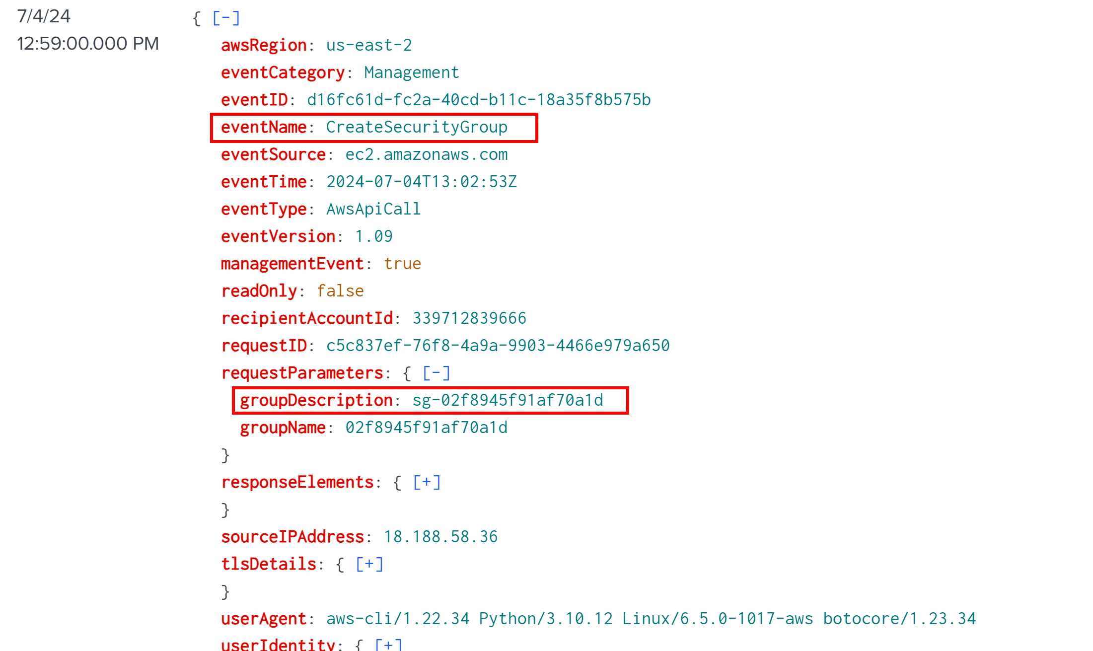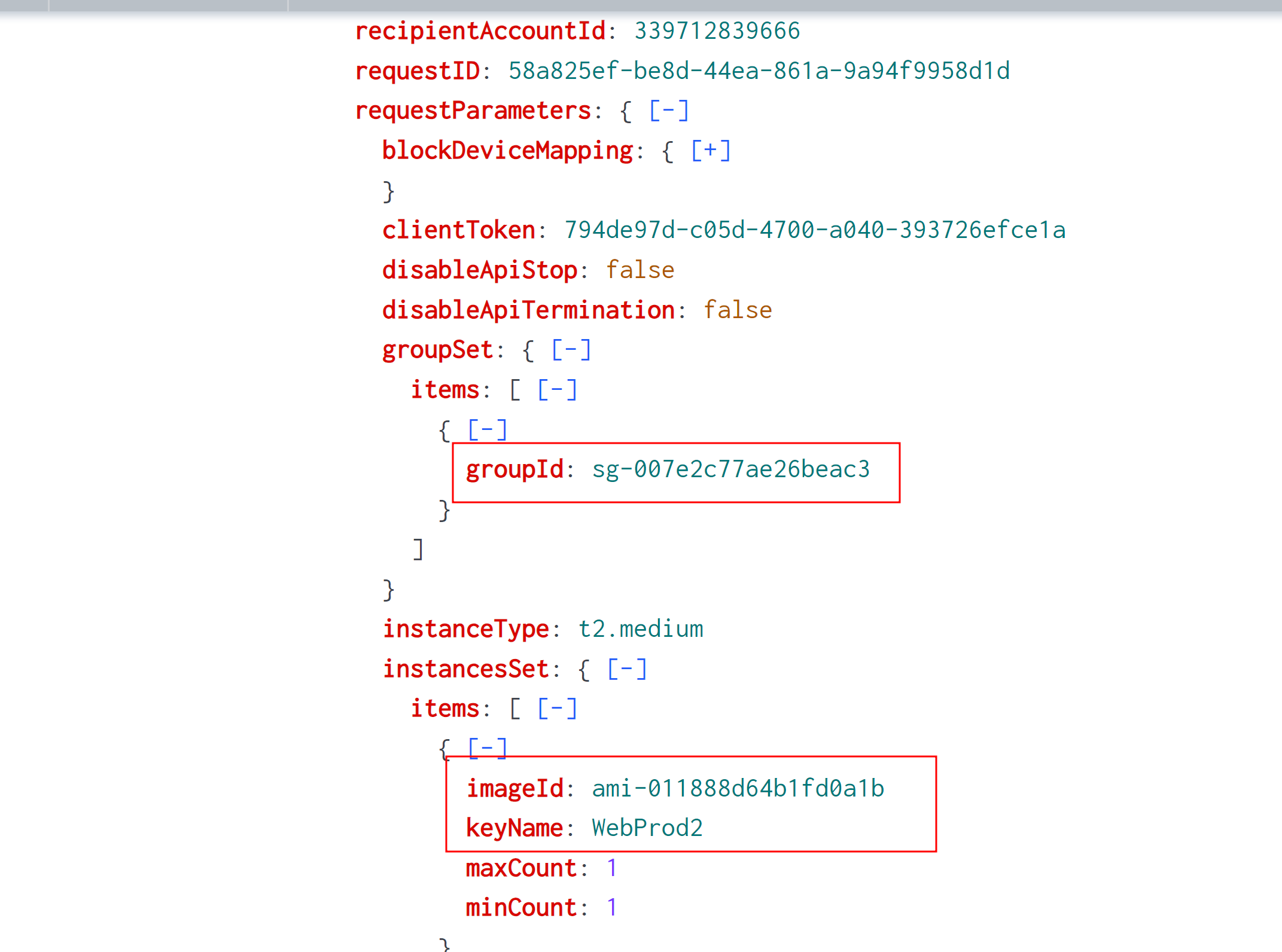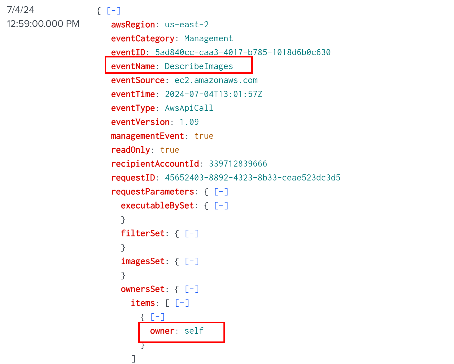Attacker only check for images own by the current organization and then uses RunInstances, hypothesis here is that maybe attacker found a AMI and used same AMI to spawn the instance, since DescribeImages don’t provide the details about the response, we can’t confirm this but in the RunInstances we can check for the request parameters as it will have all arguments passed to API like keypair, secuirtygroup, vpcID, AMI etc. and then compare with list of AMI we own or confirm with Cloud or Devops team.