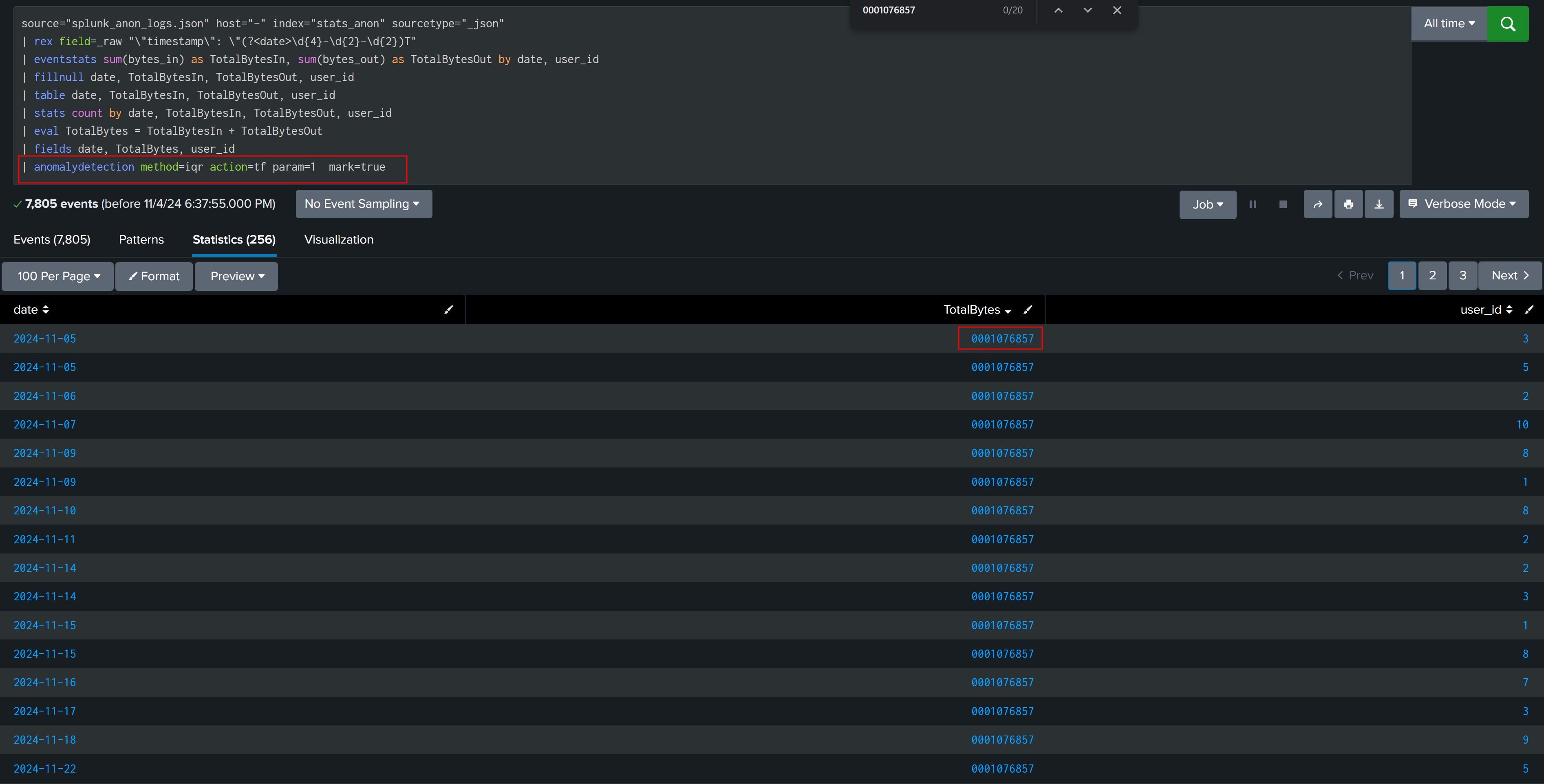 | fields date, user_id, TotalBytes, UpperBound
